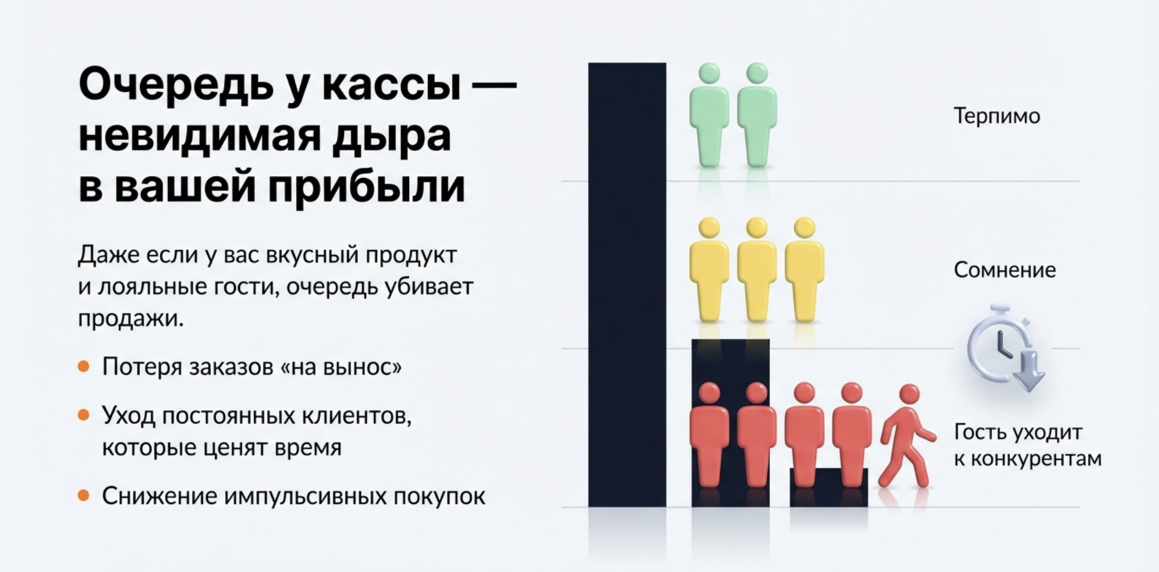 И именно здесь возникает зазор — между моментом, когда очередь начинает формироваться, и моментом, когда гость принимает решение уйти.