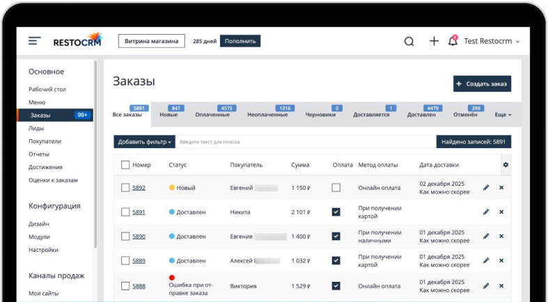 В CRM автоматически попадают все заказы по телефону, заказы и заявки с сайта, через чаты и мессенджеры